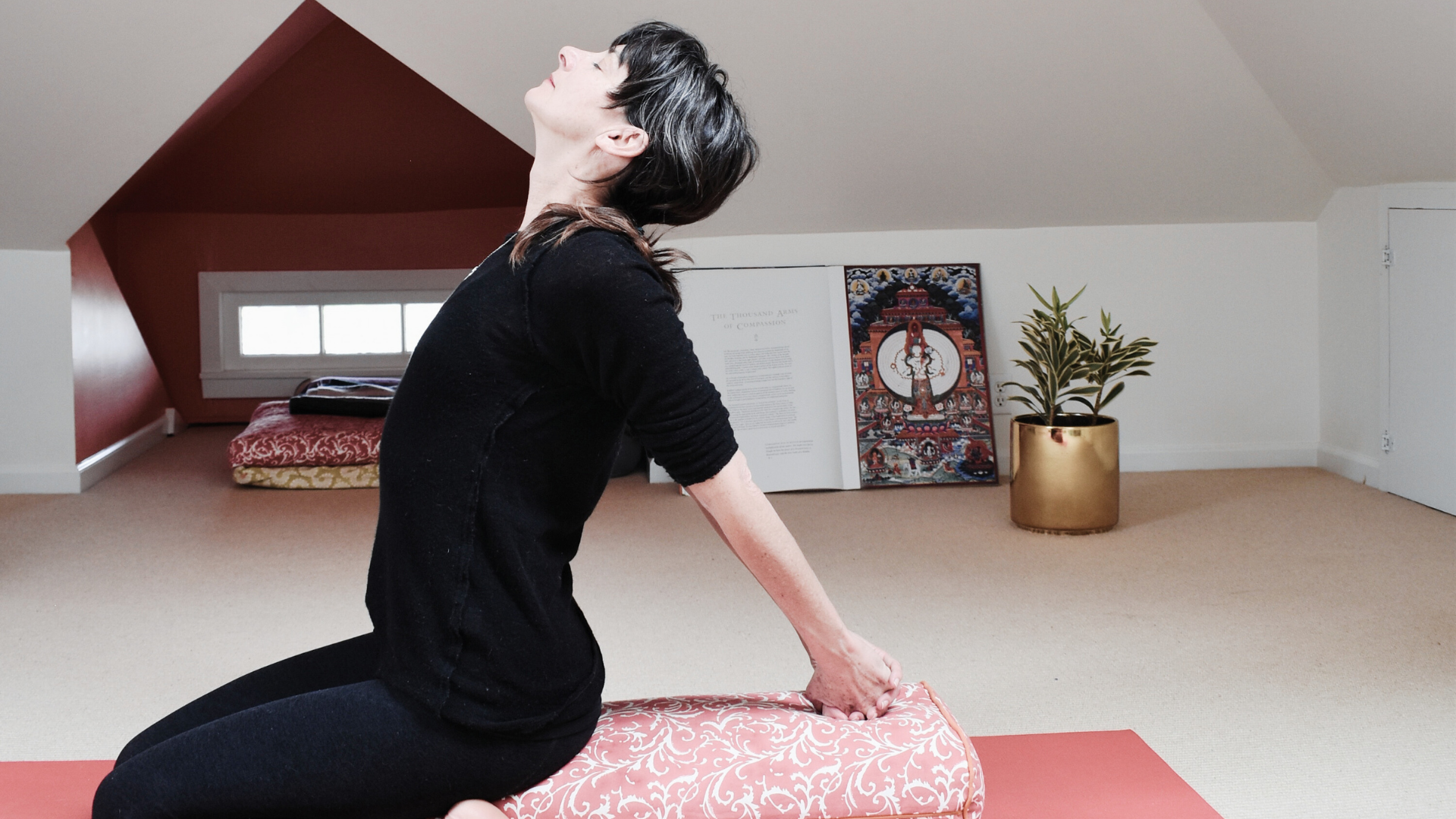If you are attending on Zoom, if possible have 2 blocks (or large books), a blanket and a strap or towel.